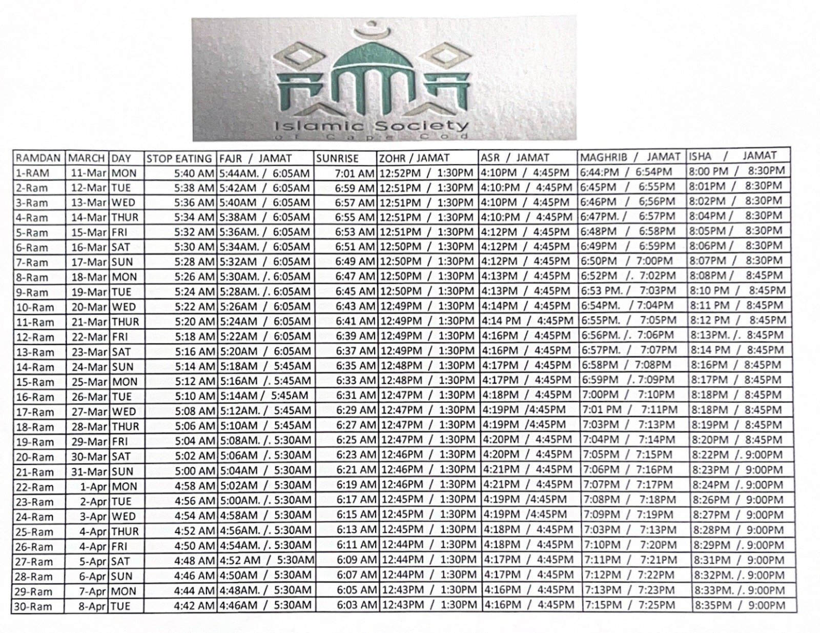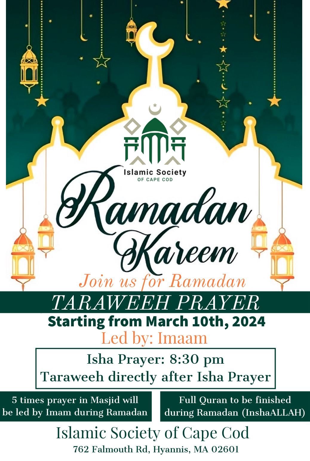 Announcements Ramadan Family Fundraising Iftar at Islamic Society Of Cape Cod. Read More July 21, 2025 1:24 pm